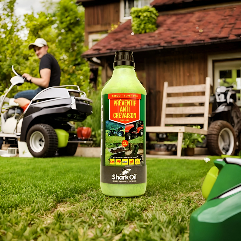 Préventif anti crevaison Shark Oil - OKO pour roue de tondeuse. 1 Litre.