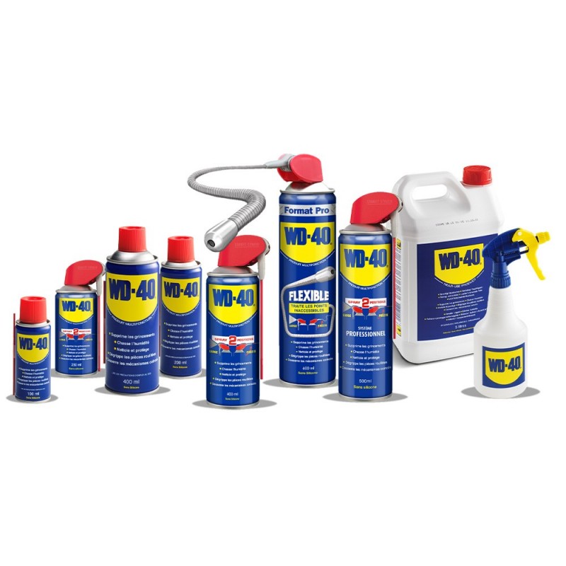 WD 40 est la marque commerciale d’une huile pénétrante. Produit nettoyant, lubrifiant et protecteur contre la corrosion, largement utilisé sous forme de vaporisateur. Il a été développé en 1953 par Norm Larsen pour éliminer l’eau et pour prévenir la corrosion dans les circuits électriques. Il a aussi plusieurs utilisations domestiques et il permet aussi d’isoler les circuits électriques. WD40 signifie Water Displacement – 40th attempt, en français dans le texte : Répulsion de l’eau au 40e essai. Ce nom, un peu « bizarre » vient du carnet de Norm Larsen, qui essayait de trouver une recette qui empêche la corrosion. Il est arrivé à cette recette à son 40e essai. Le WD-40 était utilisé premièrement par Convair pour protéger l’extérieur des missiles Atlas aux Etats-Unis. Le produit fut disponible sur le marché dans les magasins de San Diego à partir de 1958.