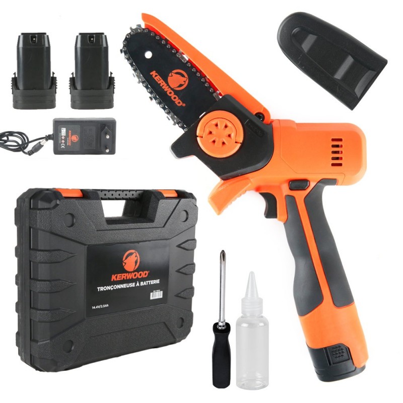 Découvrez la toute nouvelle mini tronçonneuse Kerwood, désormais plus performante que jamais avec une puissante intensité de 2,5 Ah ! Fournie avec 2 BATTERIES offrant 1H30 D'AUTONOMIE !