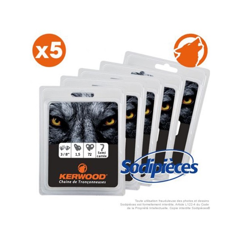 Chaîne tronçonneuse Kerwood 72 maillons 3/8”, 1,5mm. Par 5