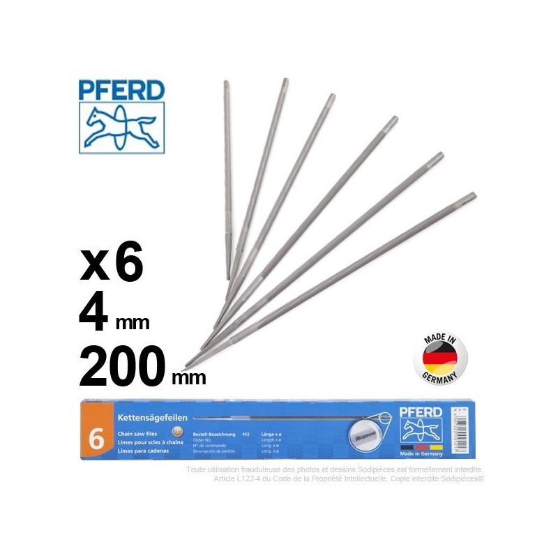 6 Limes d'affûtage de chaînes Pferd Ø 4 mm x 200 mm