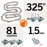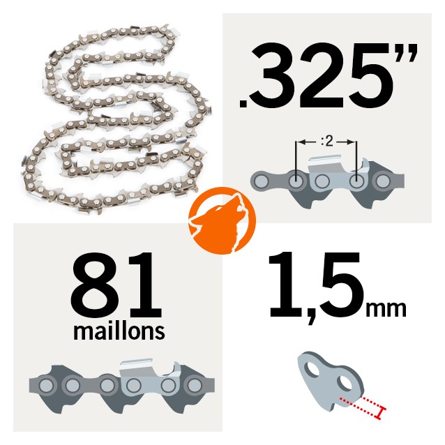 Cette chaîne KERWOOD de 81 maillons, au pas 0.325" et à jauge 1,5 mm, est parfaite pour les tronçonneuses compactes et les outils d'élagage. Son profil semi-carré offre un excellent équilibre entre performance de coupe et facilité d'affûtage, avec une durabilité professionnelle.