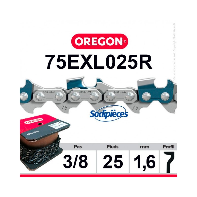 Chaîne tronçonneuse 75EXL025R OREGON Super 70. 3/8". 1,6mm. 25 pieds