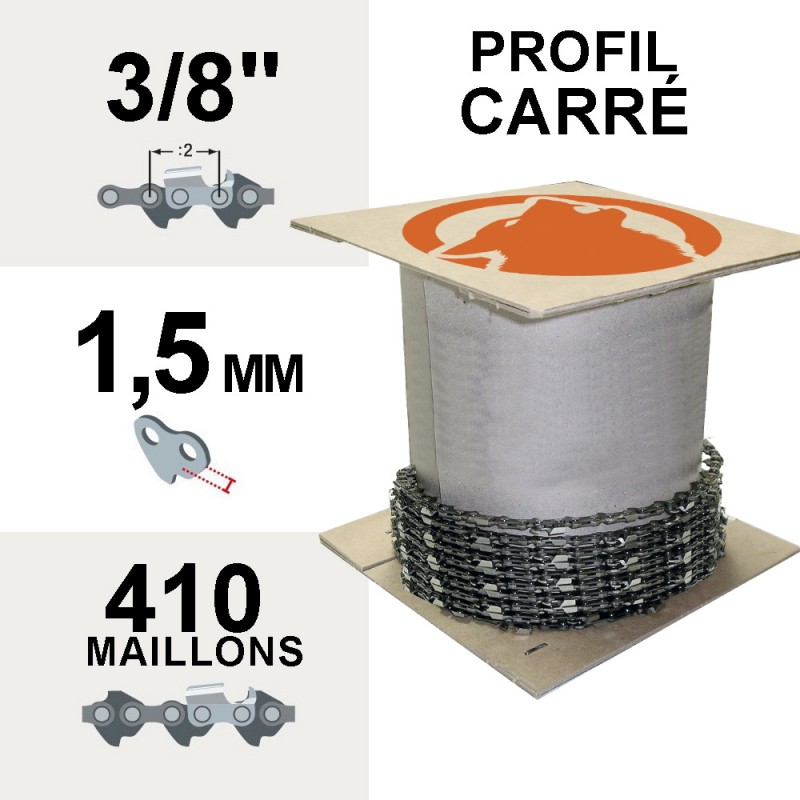 Permet de confectionner des chaînes sur mesure adaptées à différents modèles de tronçonneuses. Fabriquées en acier traité, ces chaînes offrent une excellente résistance à l'usure, ce qui augmente considérablement la durabilité de votre matériel. Grâce aux gouges carrées, elles garantissent des coupes rapides et nettes, assurant ainsi un travail efficace et précis sur le bois dur.