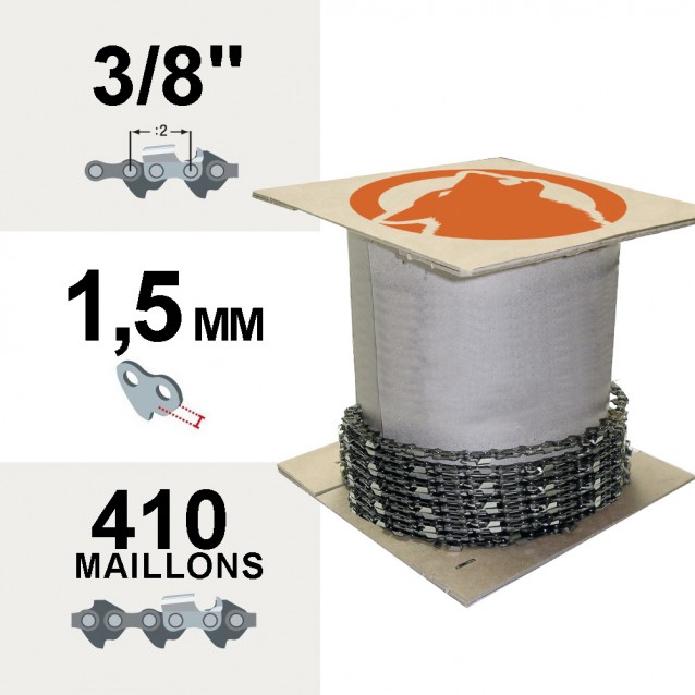 62100 chaîne kerwood 100 pieds. 3/8" ; 1.5 mm ; semi carrée.