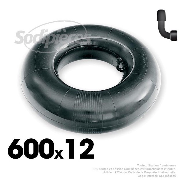 Chambre à air 600 x 12 valve coudée