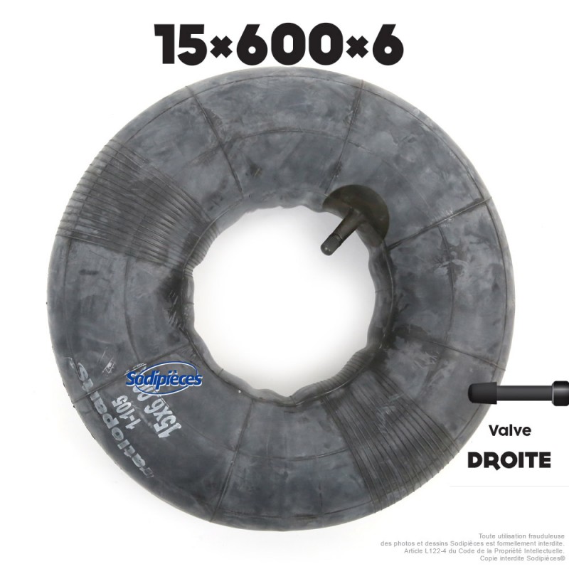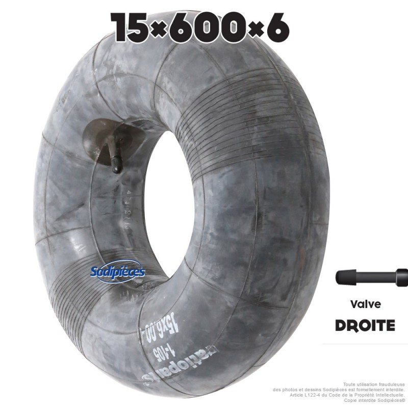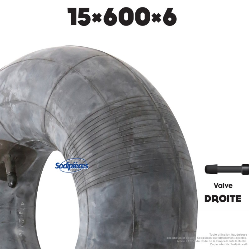 Chambre à air de 15 x 6.00 x 6 ou 15 x 600 x 6 équipée d'une valve droite.