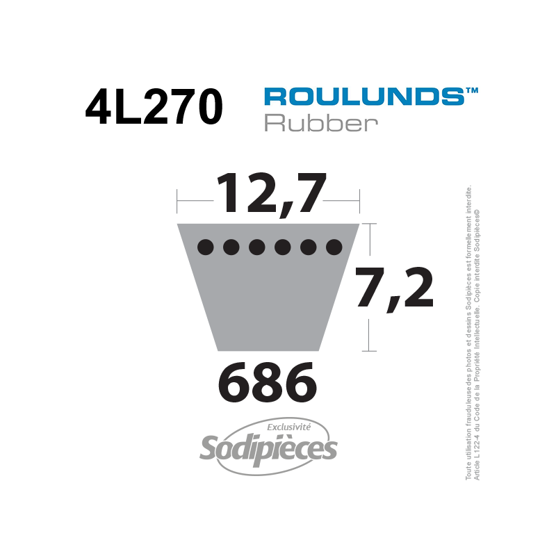 Courroie tondeuse 4L270 Roulunds Continental  12,7  x 7,2 x 686 mm