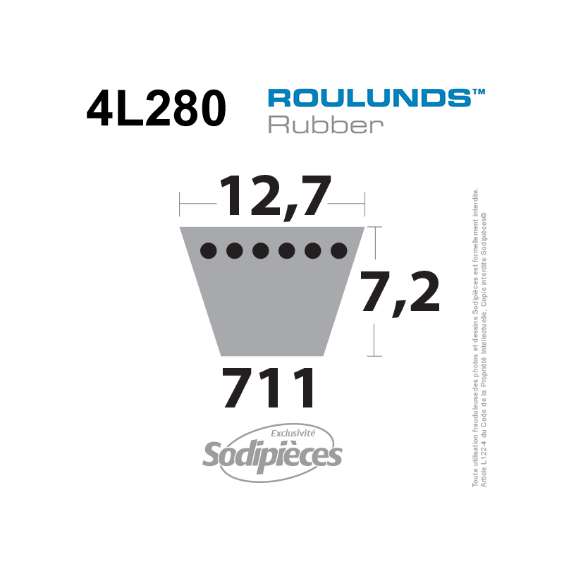 Courroie tondeuse 4L280 Roulunds Continental  12,7  x 7,2 x 711 mm