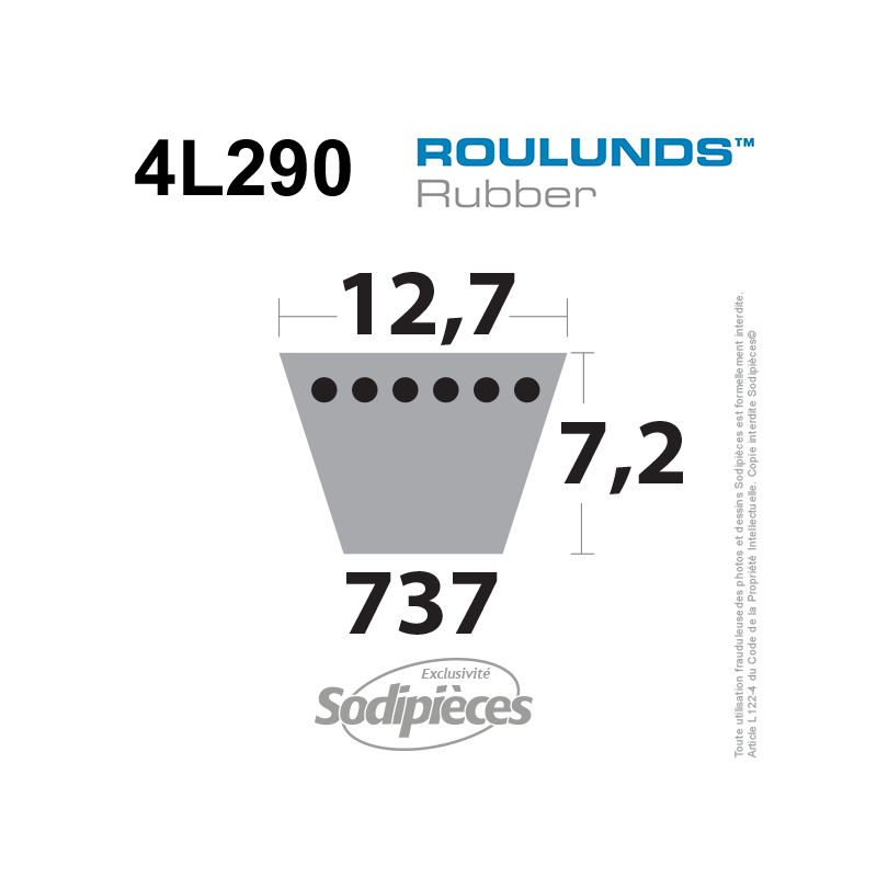 Courroie tondeuse 4L290 Roulunds Continental  12,7  x 7,2 x 737 mm