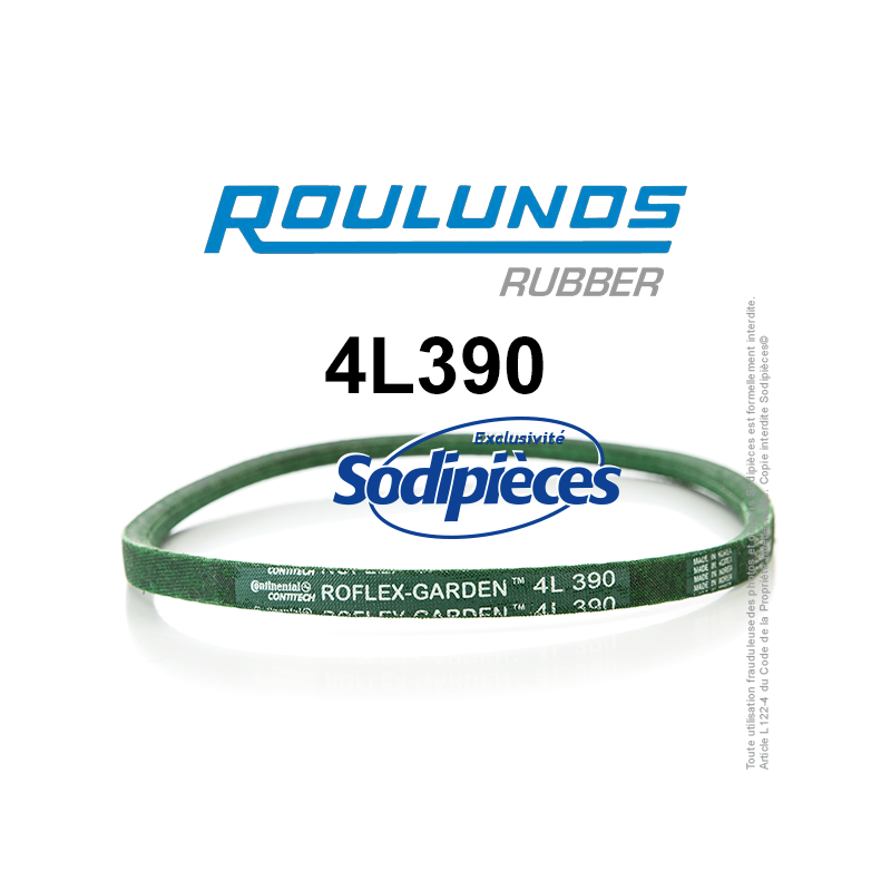 Courroie tondeuse 4L390 Roulunds Continental  12,7  x 7,2 x 991 mm