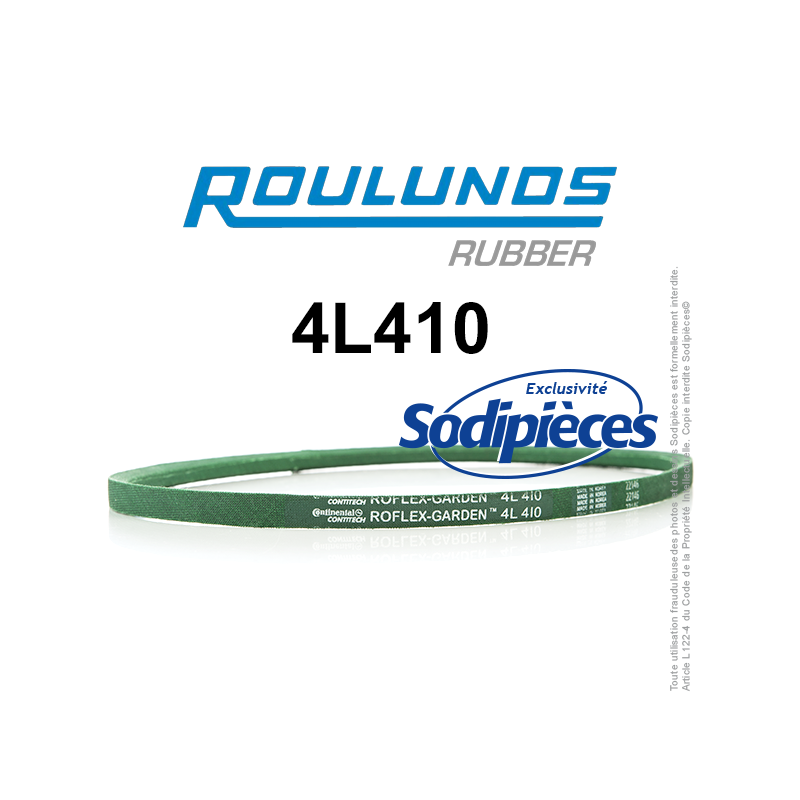Courroie de marque Continental type 4L410 de taille 12,7 x 7,2 x 1041 mm en kevlar de forme trapézoïdale.