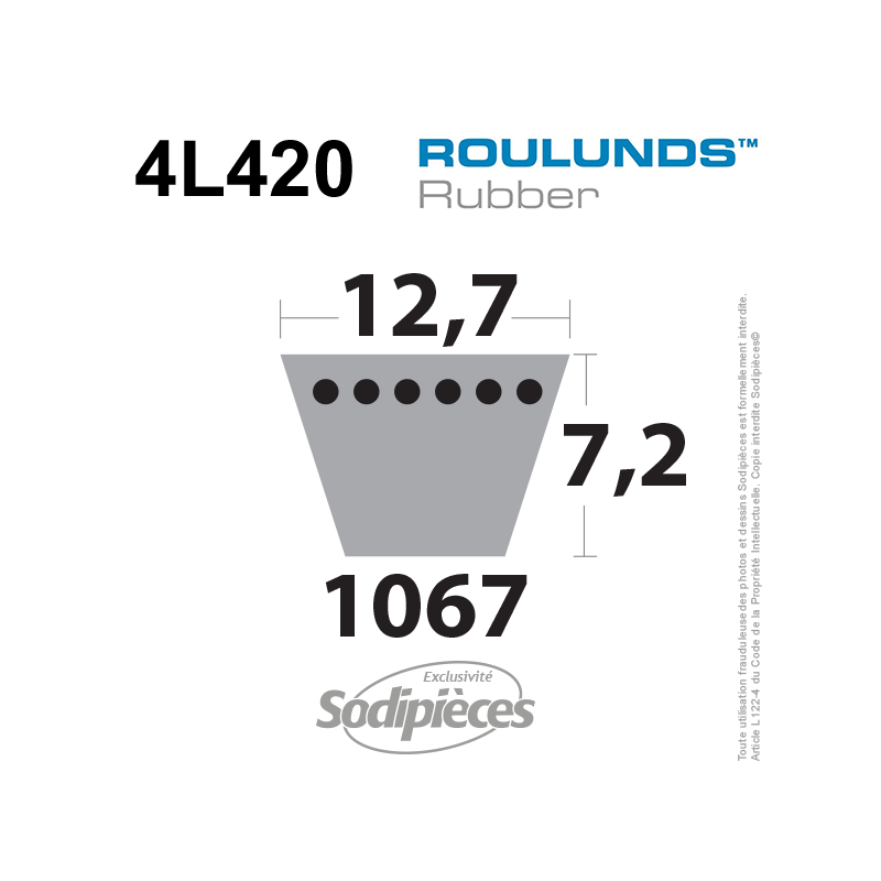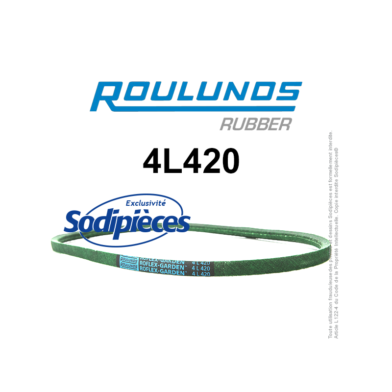 Courroie de marque Continental type 4L420 de taille 12,7 x 7,2 x 1067 mm en kevlar de forme trapézoïdale.