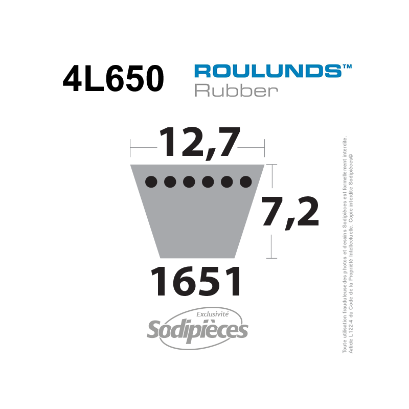 Courroie tondeuse 4L650 Roulunds Continental  12,7  x 7,2 x 1651 mm
