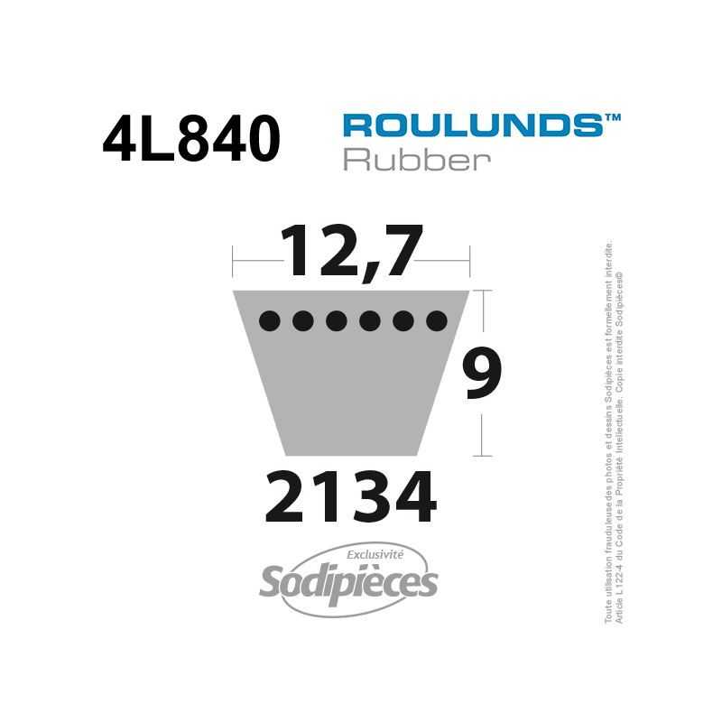 Courroie tondeuse 4L840 Roulunds Continental  12,7  x 7,2 x 2134 mm