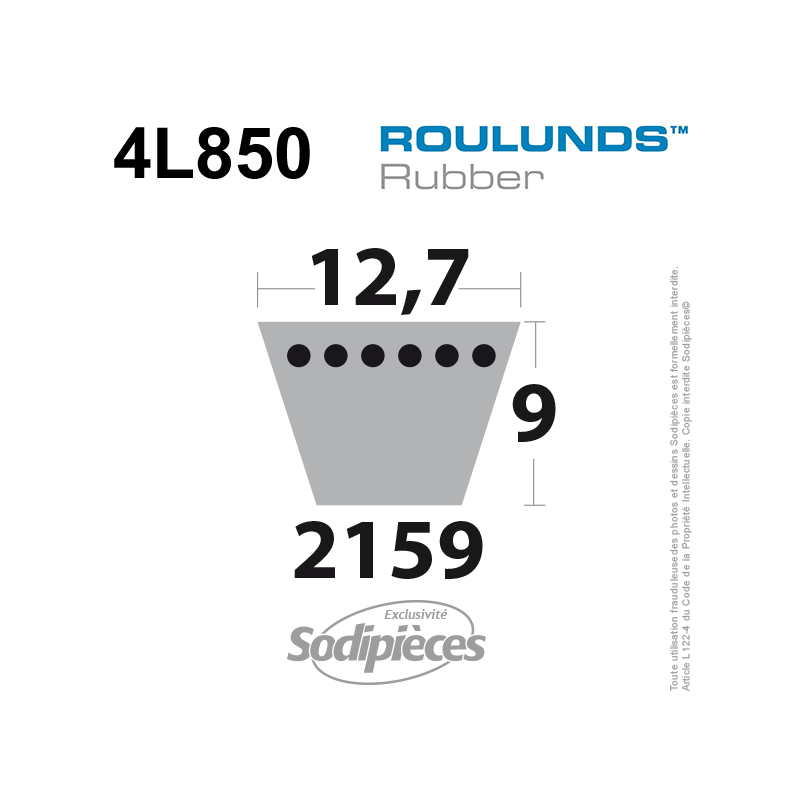 Courroie tondeuse 4L850 Roulunds Continental  12,7  x 7,2x 2159 mm