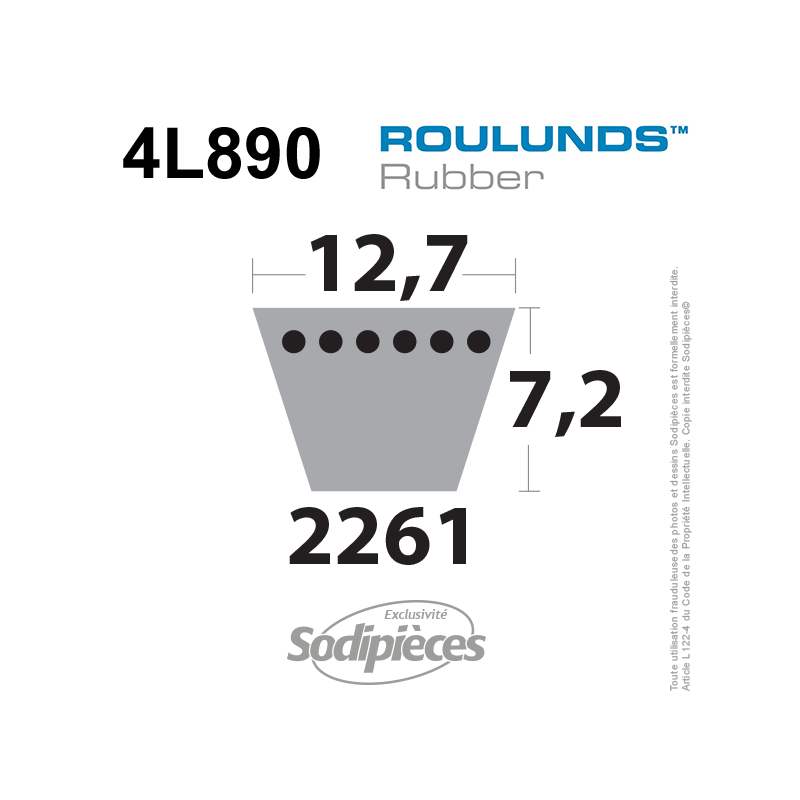 Courroie tondeuse 4L890 Roulunds Continental  12,7  x 7,2 x 2261 mm