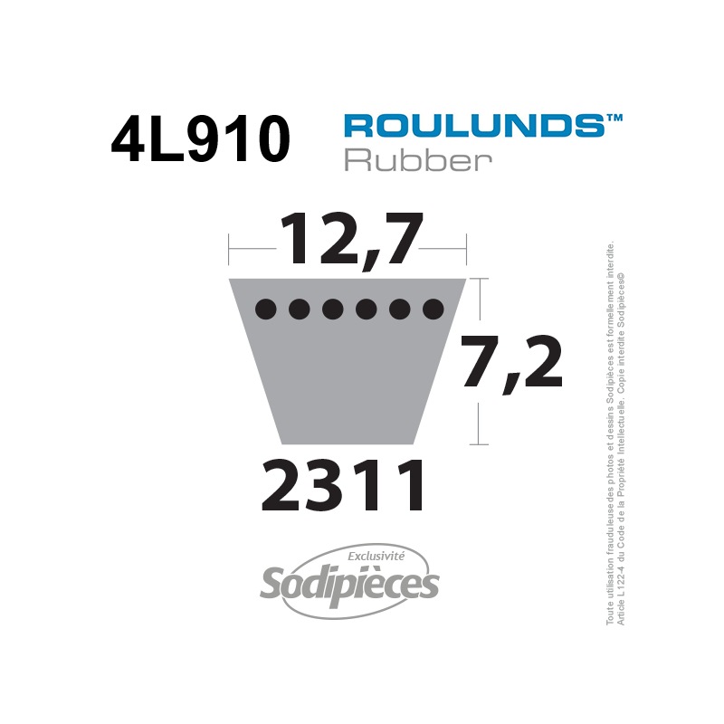 Courroie tondeuse 4L910 Roulunds Continental  12,7  x 7,2 x 2311 mm