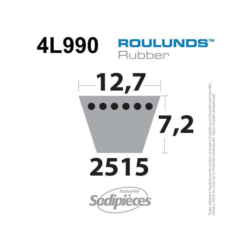 Courroie tondeuse 4L990 Roulunds Continental  12,7  x 7.2 x 2515 mm