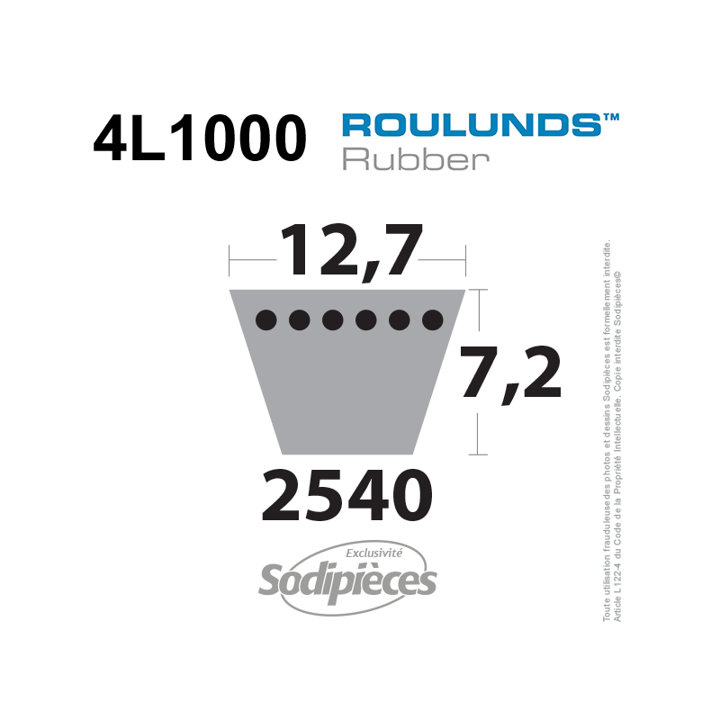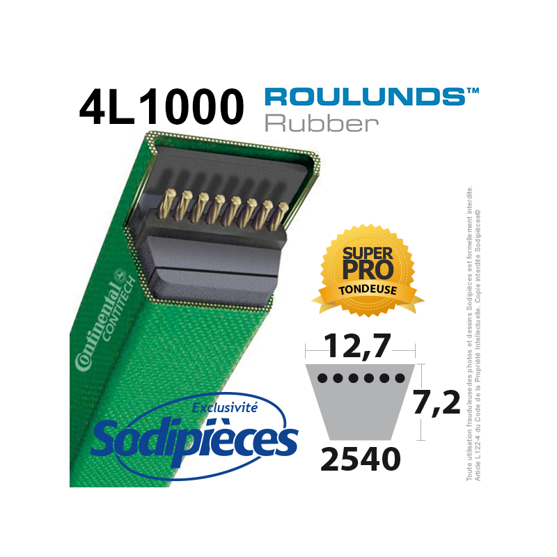 Courroie tondeuse 4L1000 Roulunds Continental  12,7  x 7.2 x 2540 mm