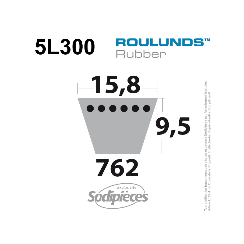 Courroie tondeuse 5L300 Roulunds Continental  15,8  x 9,5 x 762 mm