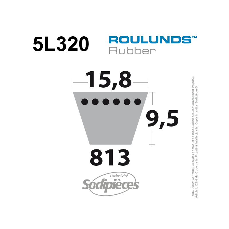 Courroie tondeuse 5L320 Roulunds Continental  15,8  x 9,5 x 813 mm