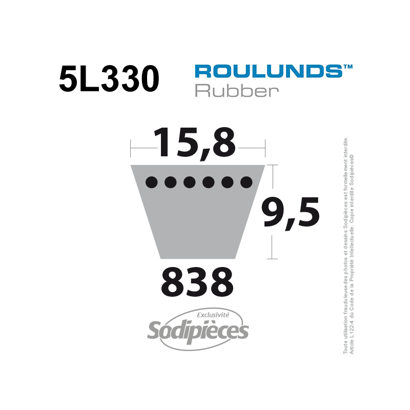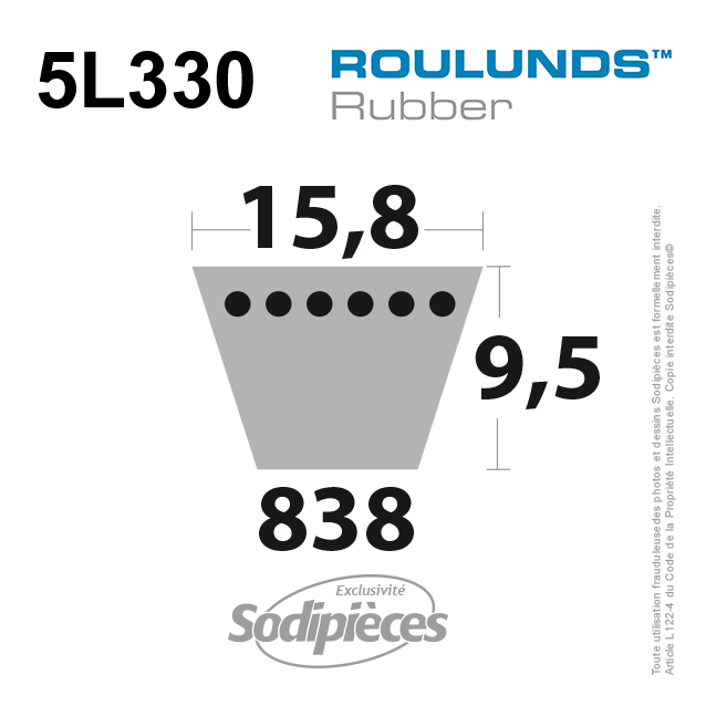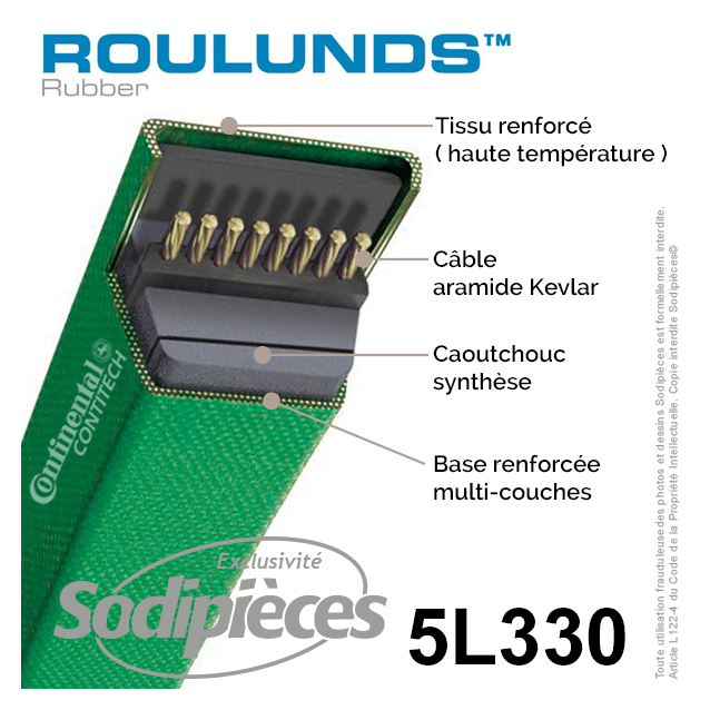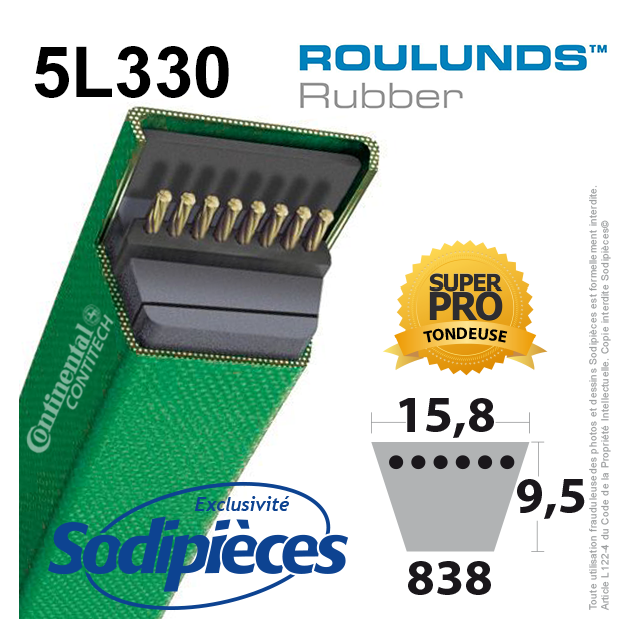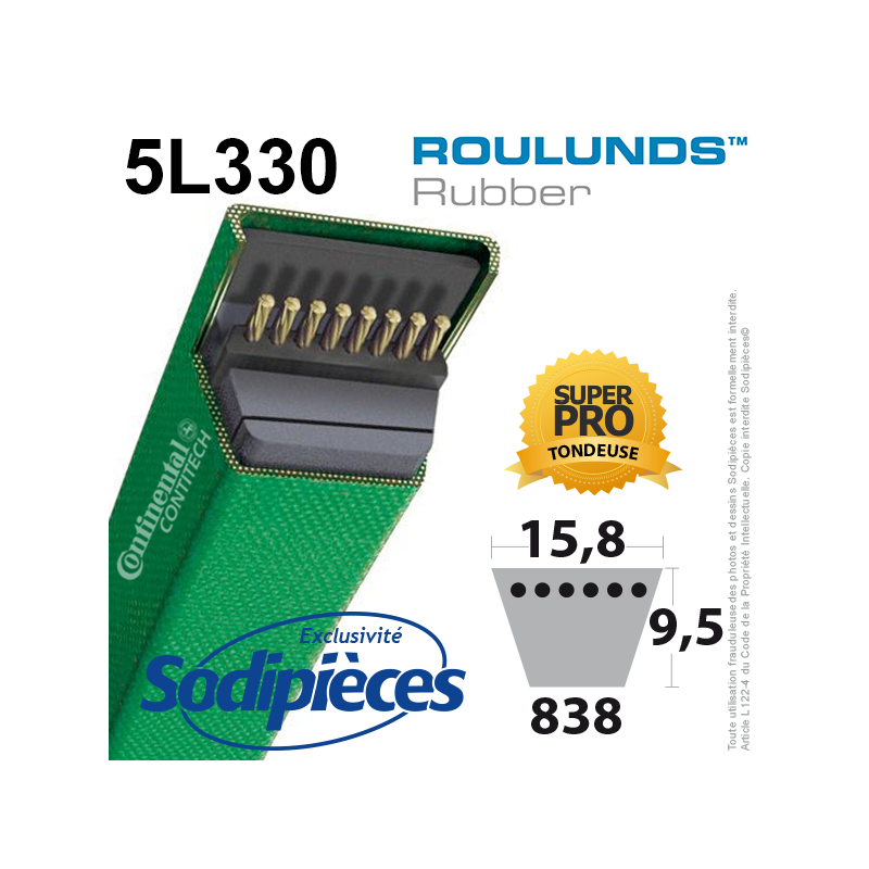 Courroie tondeuse 5L330 Roulunds Continental  15,8  x 9,5 x 838 mm