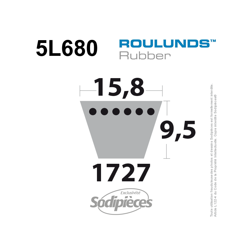 Courroie tondeuse 5L680 Roulunds Continental  15,8  x 9,5 x 1727 mm