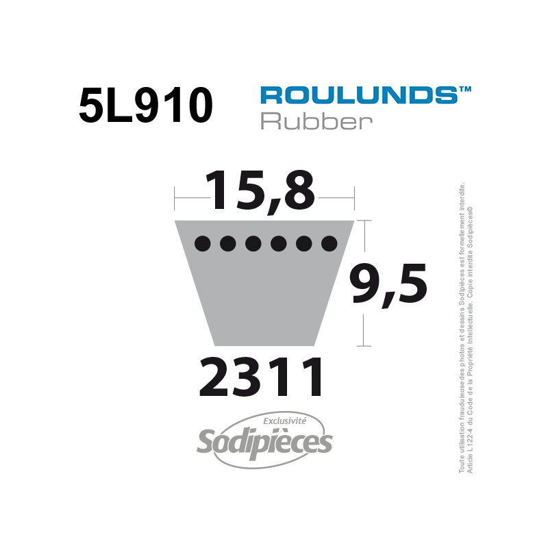 Courroie tondeuse 5L910 Roulunds Continental  15,8  x 9,5 x 2311 mm