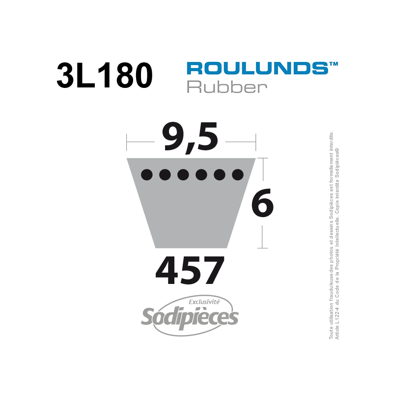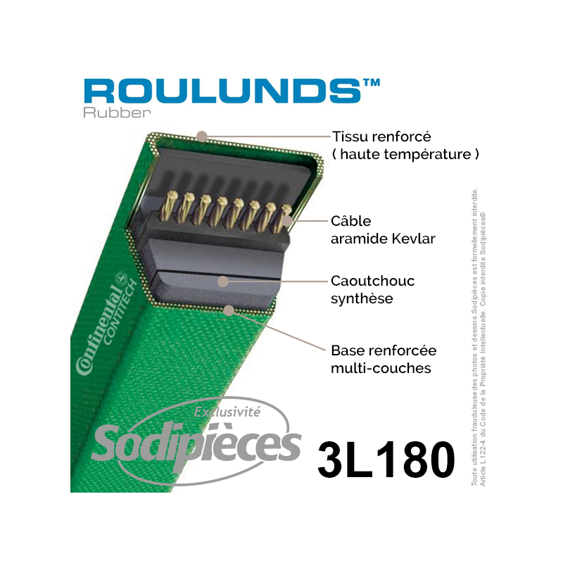 Courroie tondeuse 3L180 Roulunds Continental 9,5 x 6 x 457 mm