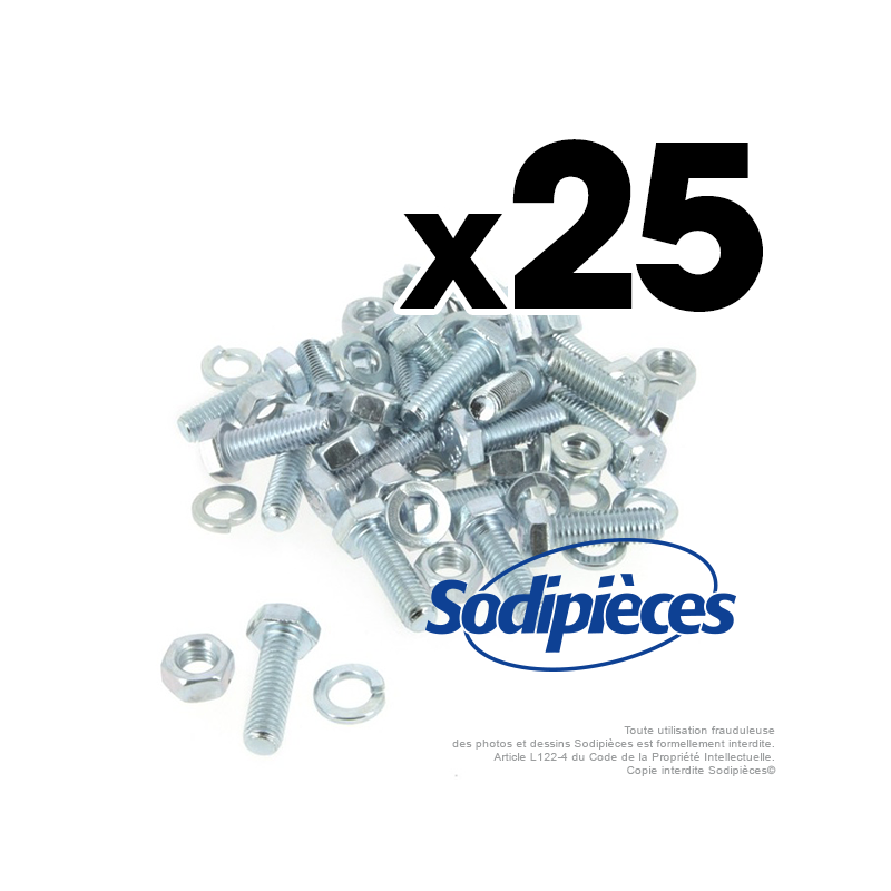 Boulons diam 10 mm x 25 mm . Lot de 25 en vrac