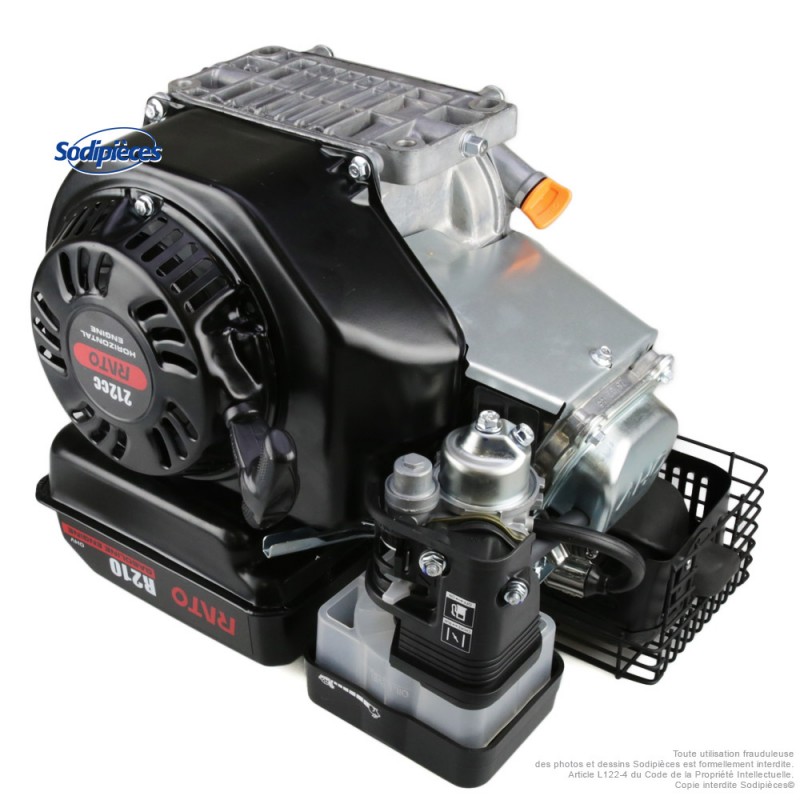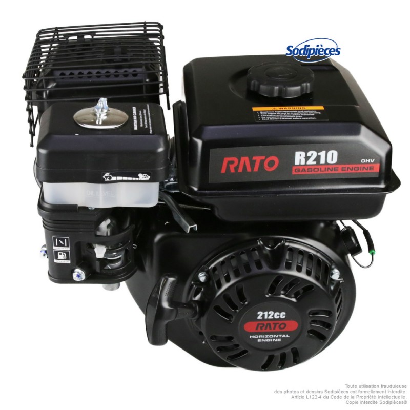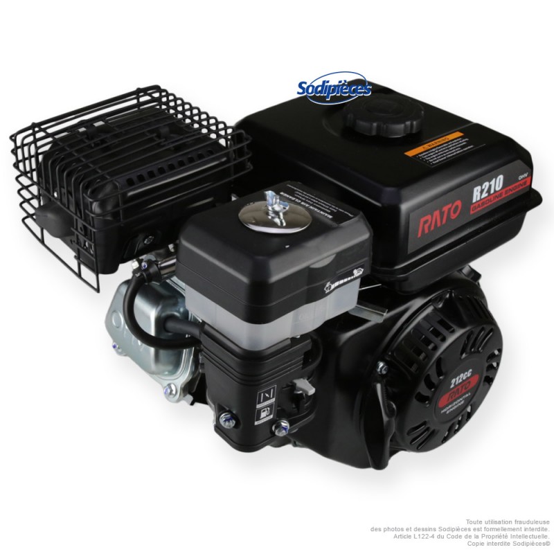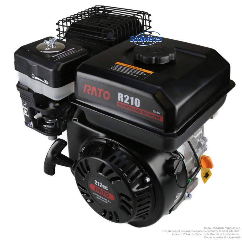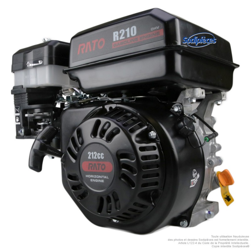 Le moteur RATO R210 est un moteur thermique essence 4 temps, compact et fiable, destiné aux équipements de motoculture, application industrielles et bâtiments - travaux publics (motobineuses, bétonnières, plaques vibrantes …). Avec ses 212 cm³, il offre un excellent compromis entre performance et efficacité, tout en restant compatible avec de nombreuses machines du marché. Filtration à bain d'huile.