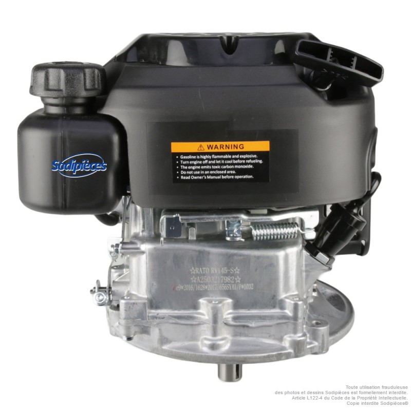 Le moteur RV145-S est un moteur thermique 4 temps à arbre vertical, conçu pour remplacer les motorisations d'origine sur les tondeuses thermiques autotractées ou poussées, ainsi que certaines motobineuses compactes. D’une cylindrée de 144,3 cm³ et délivrant une puissance de 2,5 kW à 3600 tr/min, il offre une performance fiable pour les travaux de tonte et de jardinage intensifs.
