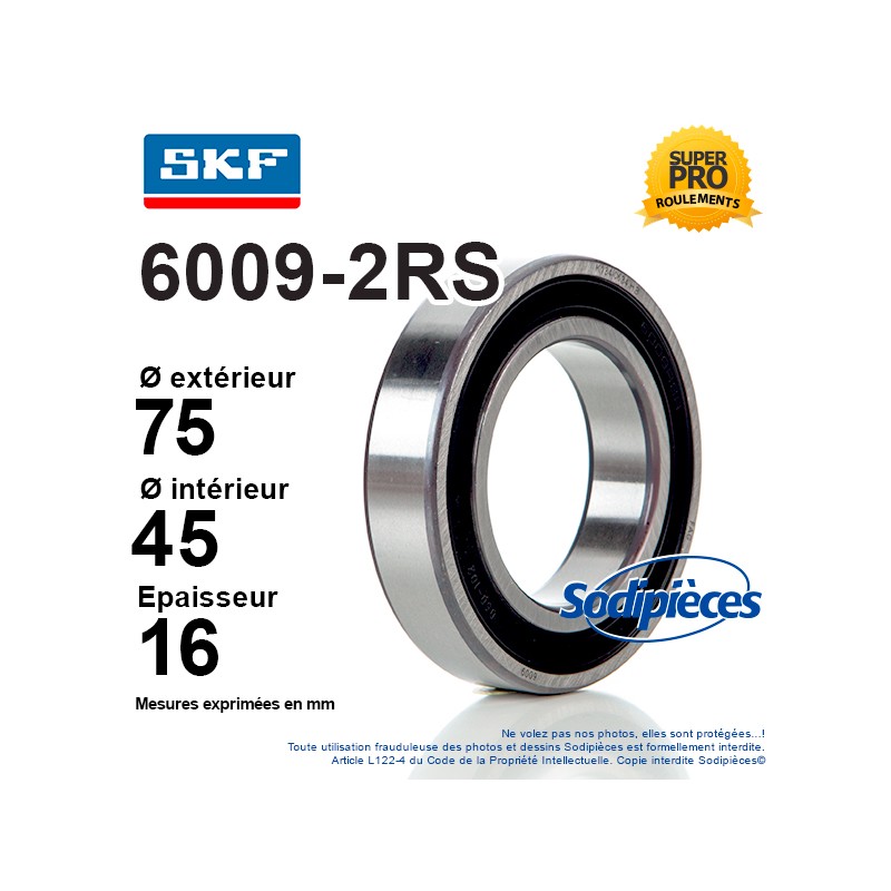 Roulement rigide à billes 6009-2RS SKF pour la motoculture.